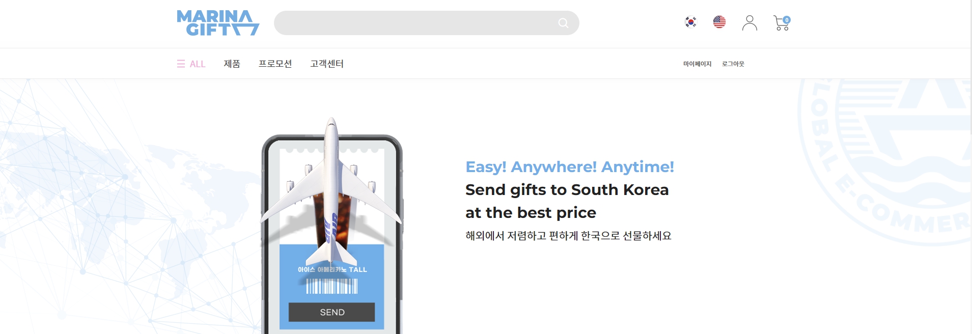 Easy! Anywhere! Anytime! Send gifts to South Korea at the best price 해외에서 저렴하고 편하게 한국으로 선물하세요 이용방법 go Marina's HOT Choice 전체상품